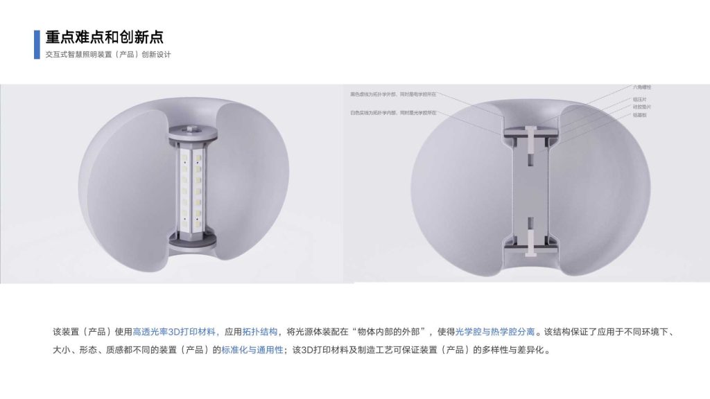 研究将采用高透光率的3D打印材料,结合3D打印制造工艺,以保证产品的多样性和差异性。我们通过内部结构的连续变化来增强产品的结构强度,从而解决了3D打印制造中可能出现的问题。这种特殊的结构既是热学、光学又是结构性的,为产品的多样化应用提供了可能性。